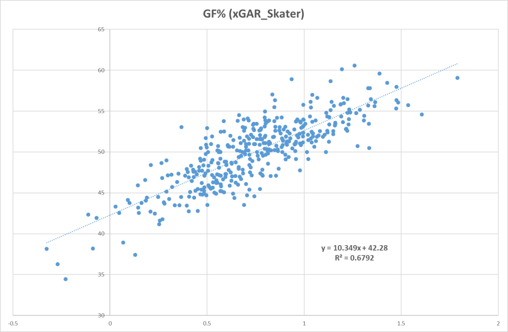 This shows that GAR Skater combined with GSAx correlates very well team quality. This is interesting.