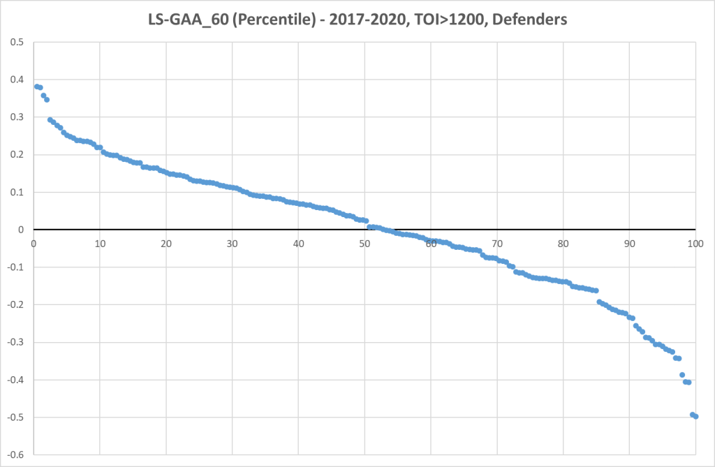 Defender LS-GAA_60 from 2017/2018 to 2019/2020 (TOI>1200):