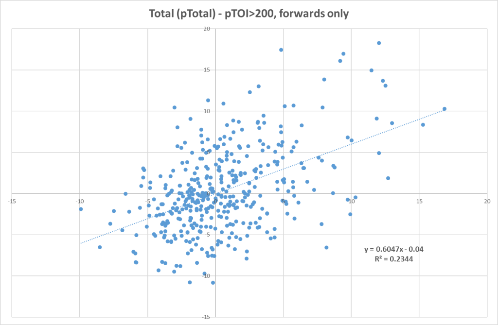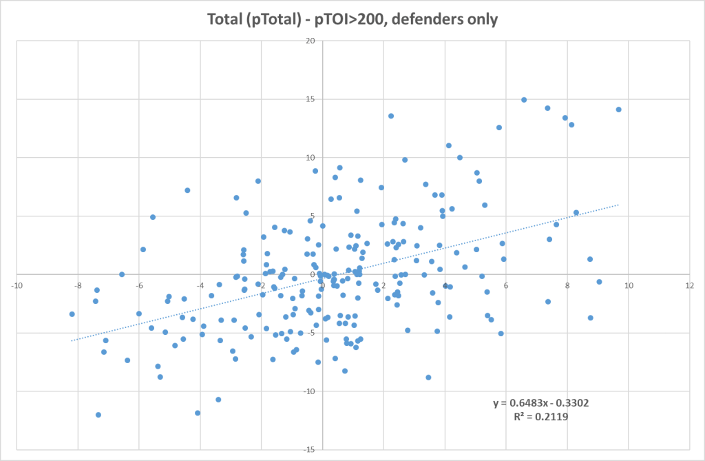 And here’s the correlation if we don’t include goalies: