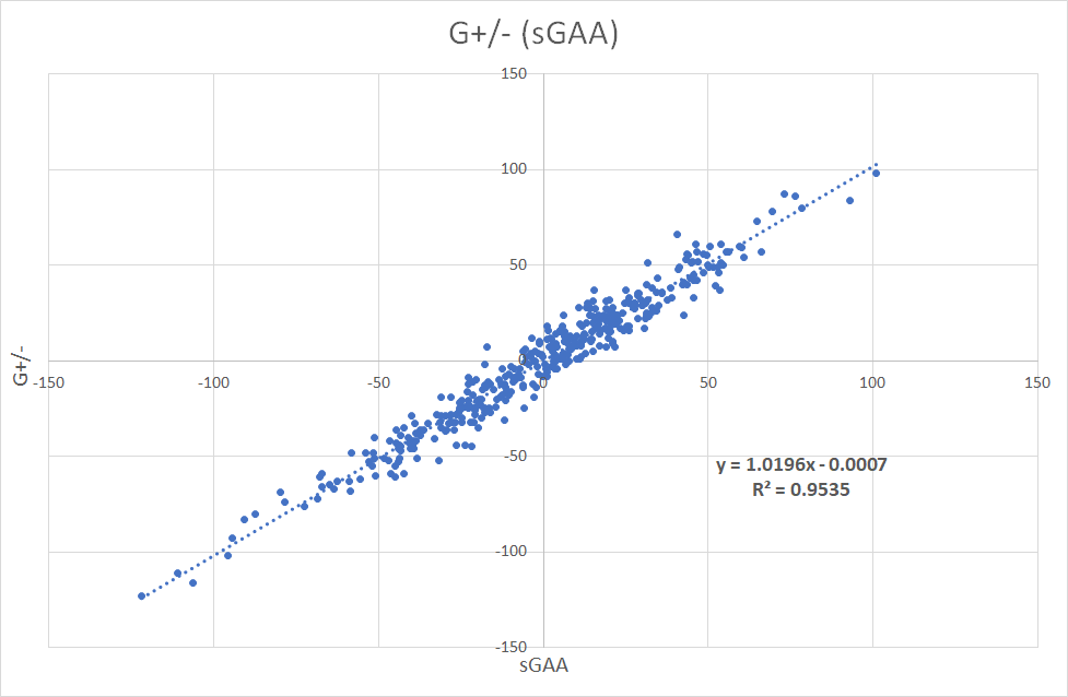 And here’s the combined model (sGAA) compared to the actual G+/-
