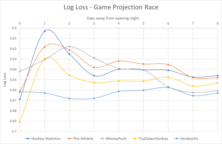 Game Projections – January 22nd 2021 Posted byLars Skytte22. January 2021Posted inIkke kategoriseret Hockey-Statistics Here’s how the model compares to other public models: Game projections will be updated here daily. All games so far can be found here. The home ice advantage has been cut in half due to empty seats. I will reexamine this in a few weeks. View original postDel dette: Share on X (Opens in new window) X Share on Facebook (Opens in new window) Facebook Like Loading... Related