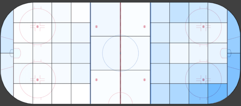 The purpose of this project is to look at the player positioning in relation to the puck position. I’ve created a tool that splits the ice rink into smaller zones. You can then select a specific puck position to see the corresponding player positions – Either as a heat map or as the average player position(s).