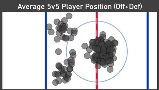 In the project I’ve made a simple estimation of player positions. I’ve simply taken the sum of the average player position at 5v5 in the offensive zone and the average player position at 5v5 in the defensive zone.
