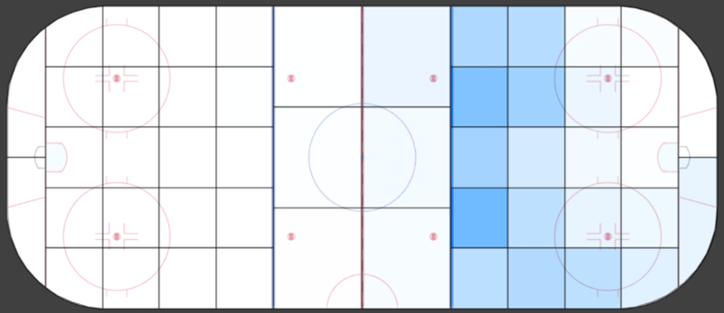 - What is the average y value? Is the puck more on the left side (positive y value) or more on the right side (negative y value). For instance, if the y value is negative when the puck is in defensive zone and you’re not possessing the puck (defending), then you’re probably defensively weaker or less aggressive on your right side.