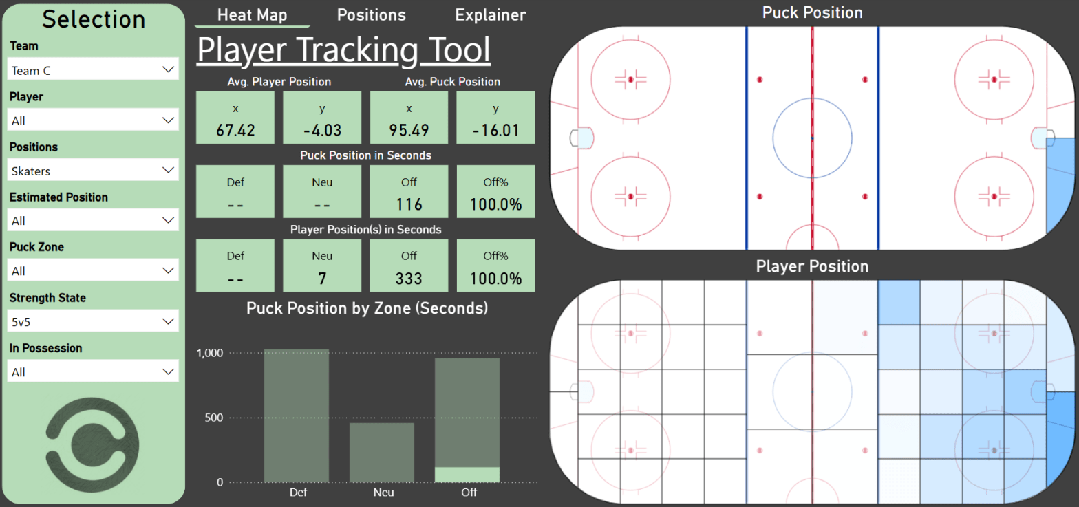 This project focuses on analyzing player positions in relation to puck positions on the ice using a custom tool that visualizes data as heat maps or average player locations. Coaches and players can utilize insights to enhance tactical understanding, improve defensive structures, and evaluate player roles.